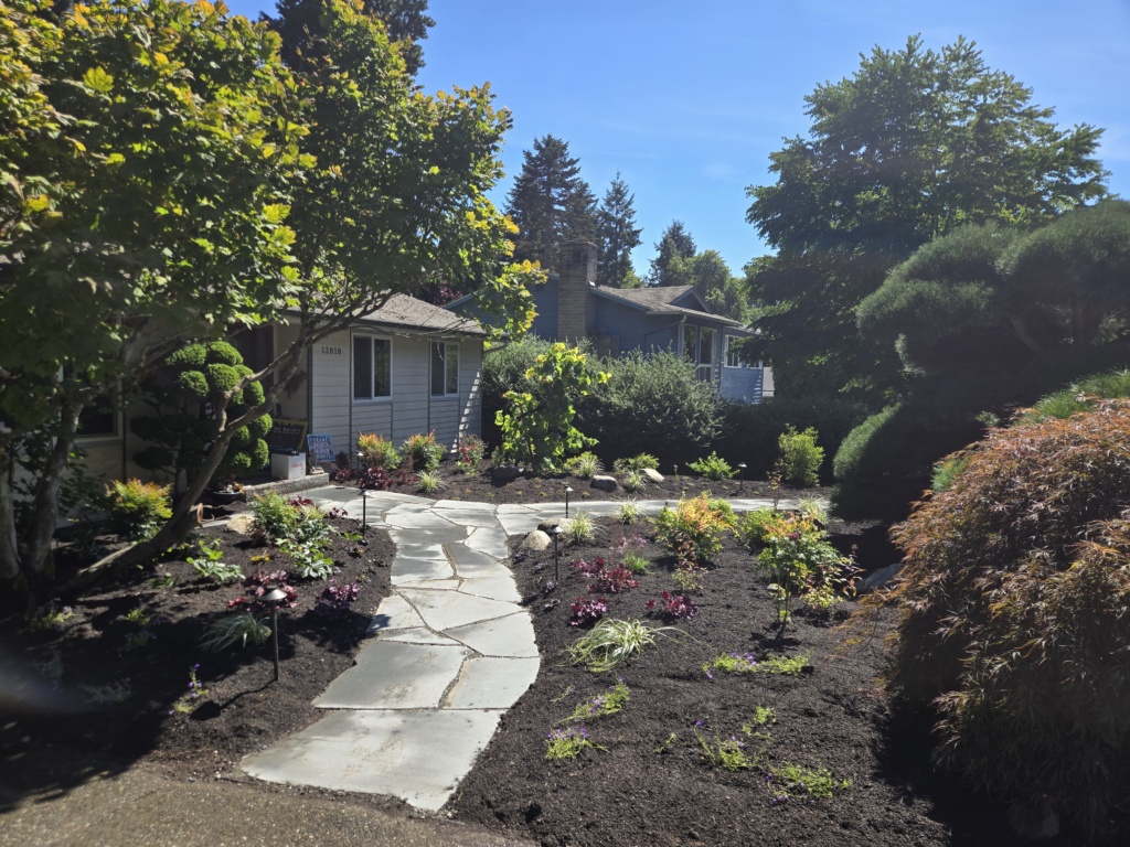 The Challenge: A classic 1960’s home in Kirkland with a garden that time forgot. Imagine this: a walkway glued to the house leading straight past a giant picture window. Not exactly privacy-friendly, huh? The garden? Think “vintage” gone a bit too far with tired grass and shrubs that had seen better days.