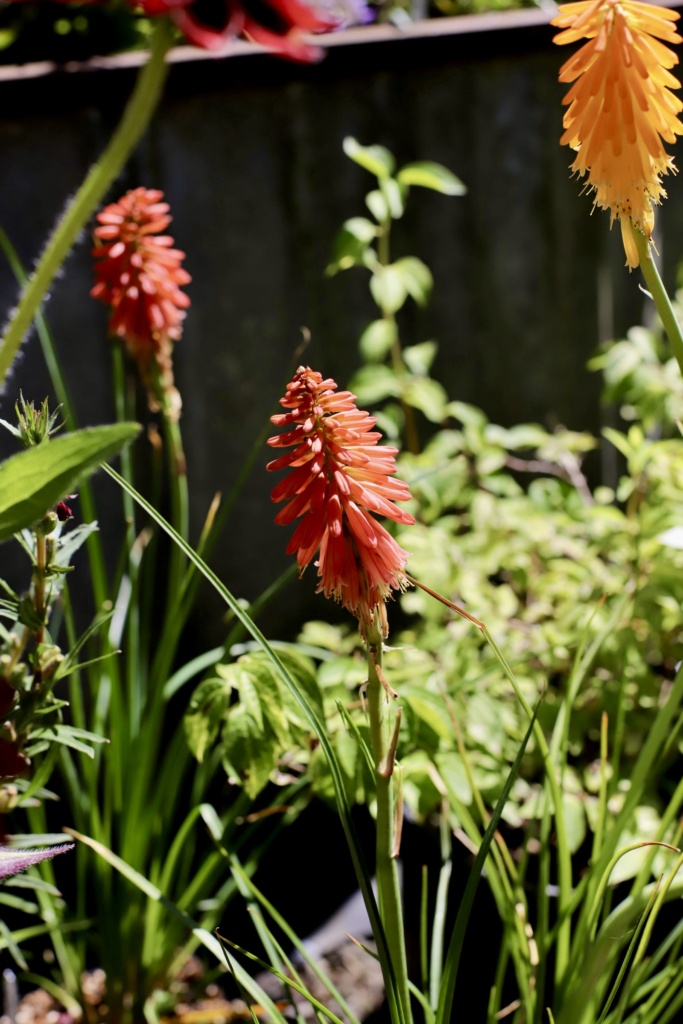 Check out the Red Hot Poker! This plant is perfect for zones 5-9 and requires some winter mulch in colder climates to stay robust.