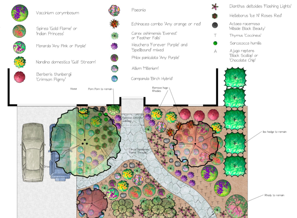 The Solution: Enter Rick, our garden design guru. He whipped up a plan that gave the walkway a new lease on life, now steering clear of the house (and that too-revealing window). Plus, he introduced a stunning new tree along with a bunch of shrubs and perennials sure to be a hit with the local bee and bird crowd.