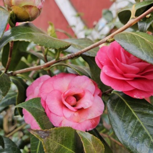 Camellias are elegant evergreen shrubs prized for their glossy foliage and stunning, rose-like blooms that appear in late fall, winter, or early spring. Available in shades of white, pink, and red, they thrive in partial shade and well-drained, acidic soil. With their long-lasting flowers and year-round greenery, camellias add timeless beauty to gardens and landscapes.
