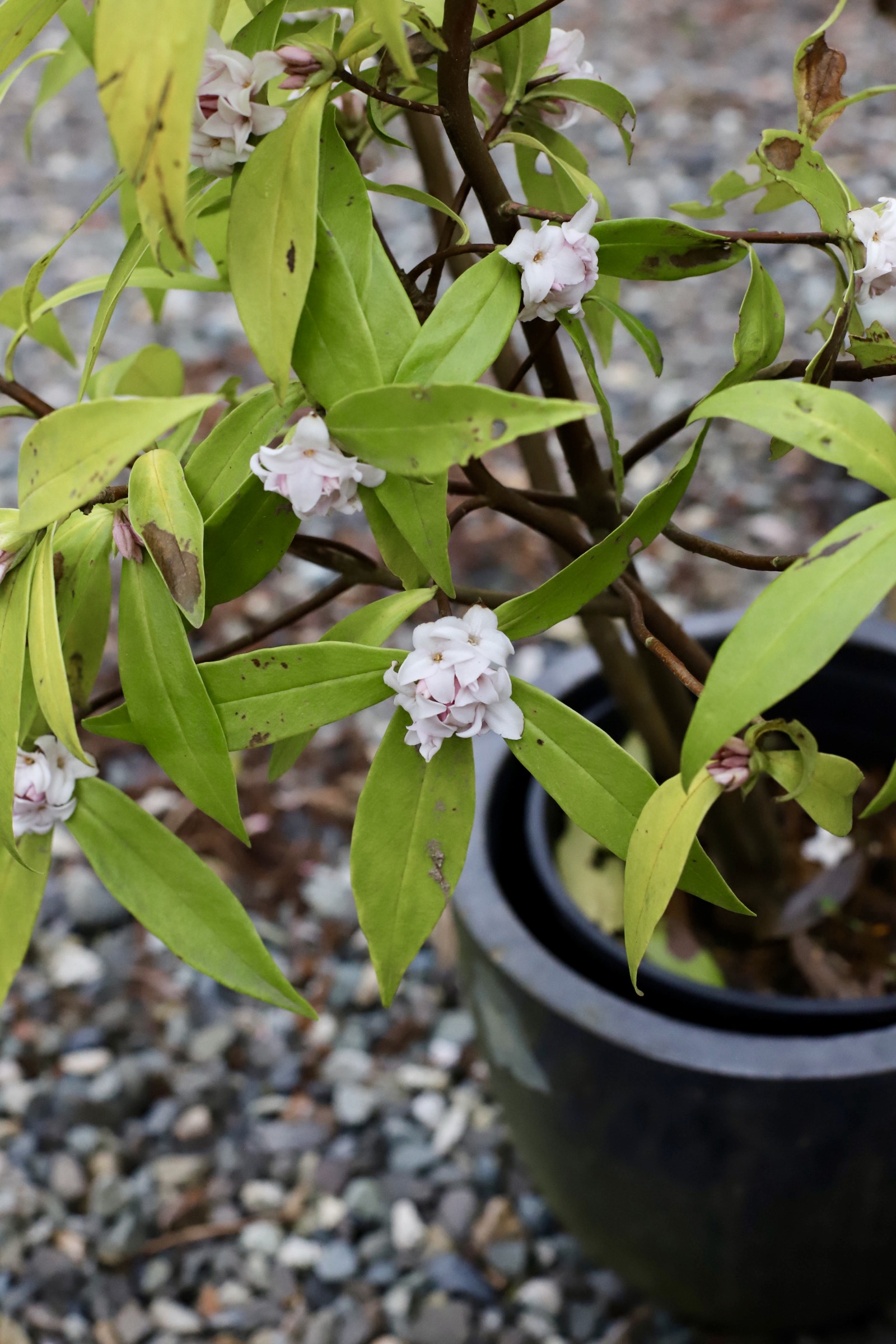Daphne shrubs are fragrant, evergreen or deciduous plants known for their clusters of small, sweetly scented flowers that bloom in late winter or early spring. They thrive in well-drained, slightly acidic soil and prefer partial shade. Though beautiful, many species, such as Daphne odora, are toxic if ingested. Their delicate, colorful blooms and glossy foliage make them a popular choice for gardens, but they can be finicky to grow, requiring careful attention to soil conditions and moisture levels.